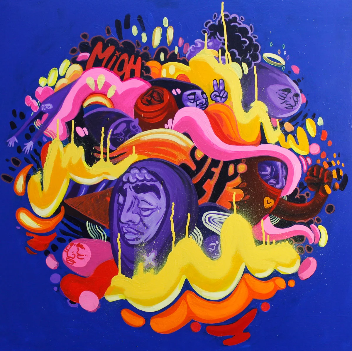 “ It Flows Up From Here”, Mixed Media on 24in x24in Panel, JT Daniels, 2018