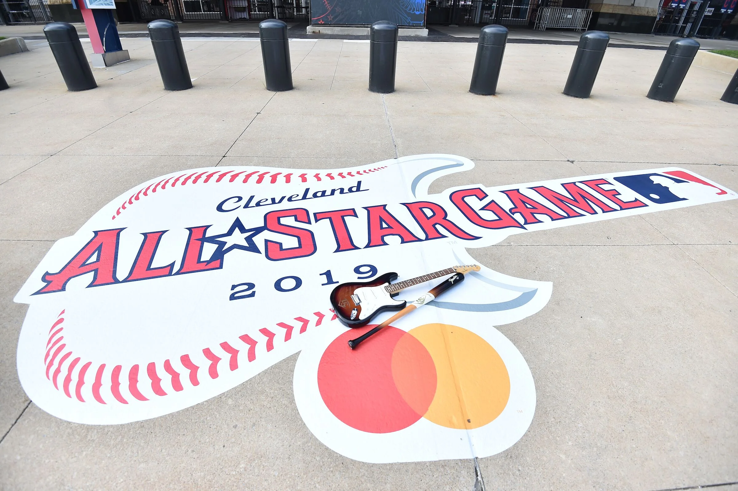 Custom Painted Fender guitar for the Louieville slugger X Fender X MLB Allstar Game 2019