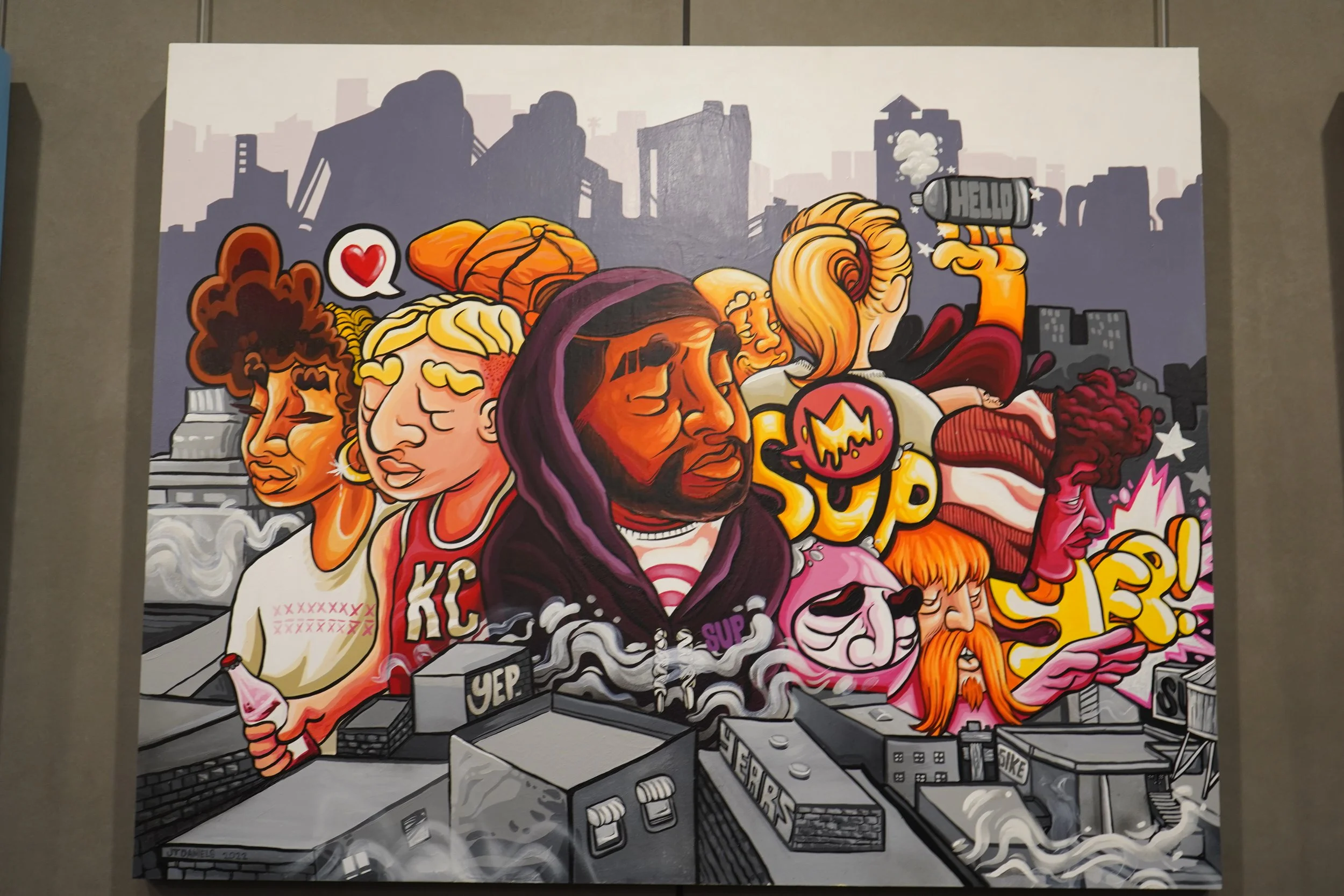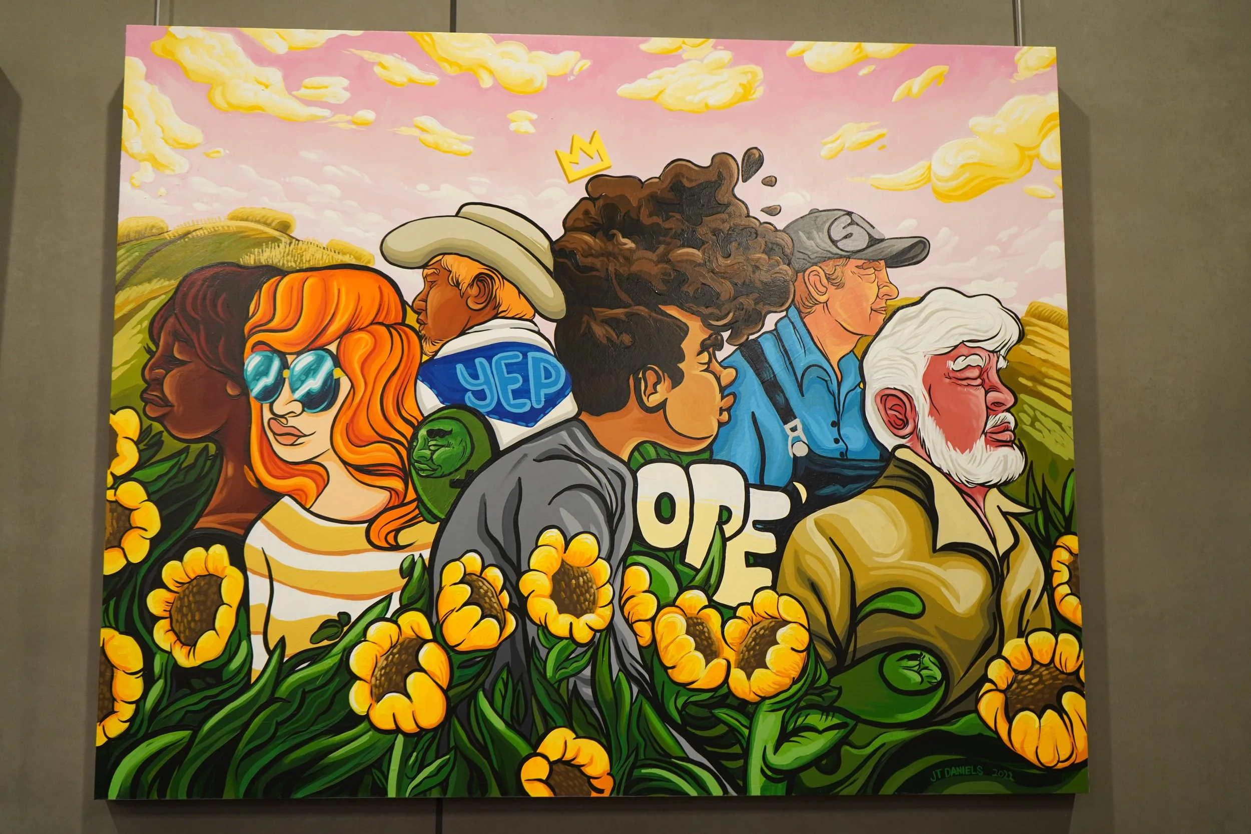 "Midwestern Meanderingsā, artwork by JT Daniels Art LLC, 2023. Artwork located in near gate B49 in Concourse B.
