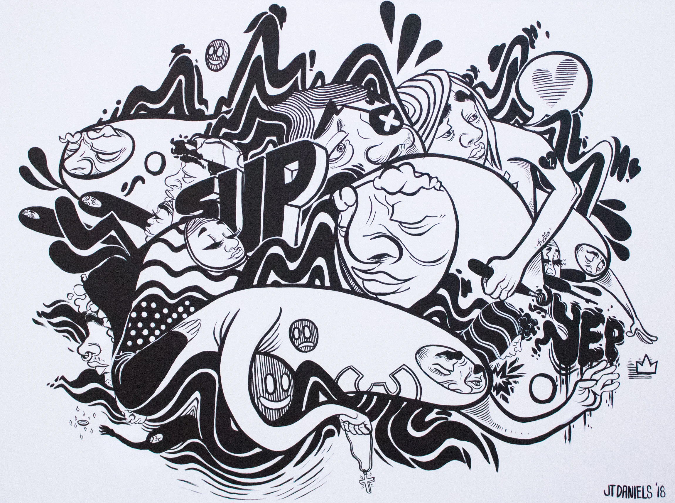 "SUP", created by JT Daniels 2018. Acrylic on 36in x48in canvas